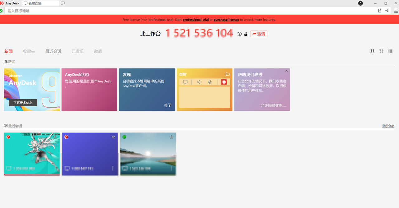 AnyDesk的界面看上去有点迷糊,看了半天才找到怎么样远程控制别人的设备。