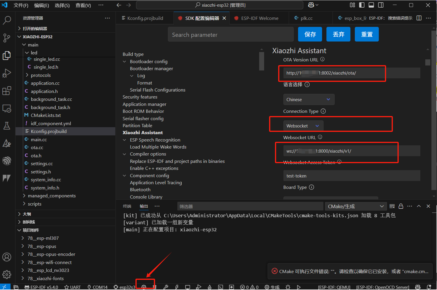 如果出现上面的结果,表示你的server端已经部署好了。接下来就是跟小智硬件的结合。注意看返回的ws://xxx.xx.xx.xx:8000/xiaozhi/v1/,其中xxx.xx.xx.xx就是你本地的地址,后面都会用到。