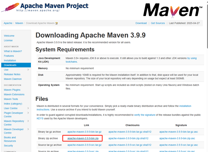 ① Maven 压缩包(下载 Maven 的二进制 zip 文件)。