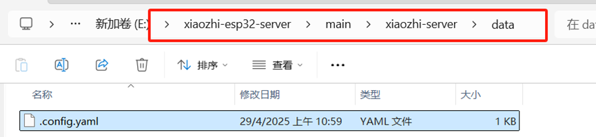 打开整一个源码文件,进入xiaozhi-server目录,检查是否存在data文件夹,如果没有data目录,请手动创建。如果 data 目录下没有 .config.yaml 文件,执行以下操作: