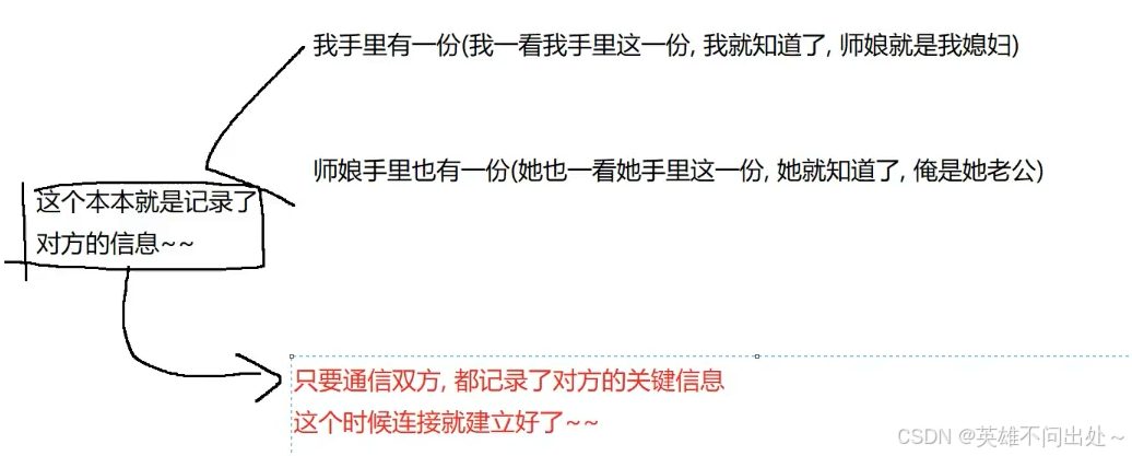 计算机中,这种抽象的连接是很常见的。此处的连接本质上就是建立连接的双方,各自保存对方的信息