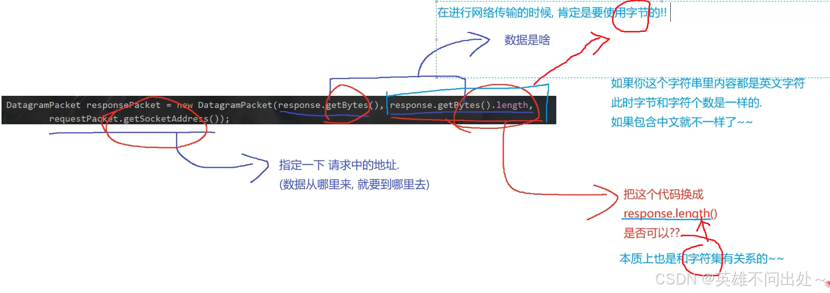 DatagramPacket responsePacket = new DatagramPacket(response.getBytes(),response.getBytes().length,