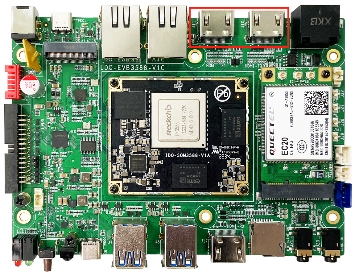 IDO-EVB3588-V1具有视频输入输出接口:HDMI-TX、HDMI-RX、eDP1.3、MIPI-DSI、MIPI-CSI