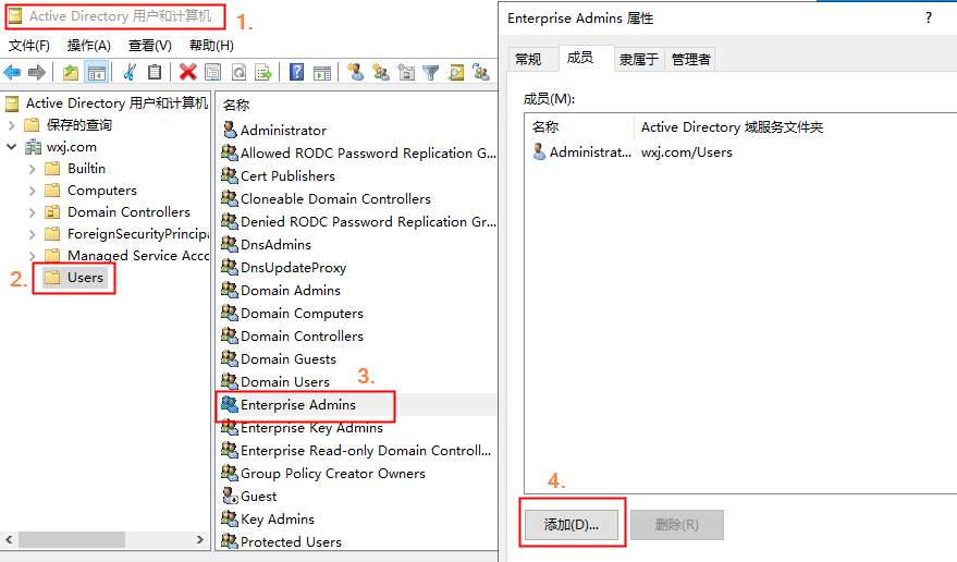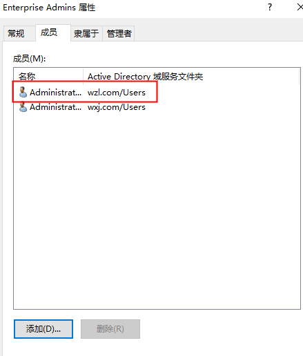 (4)需要在windows1把wzldministrator加入到Enterprise Admins 组