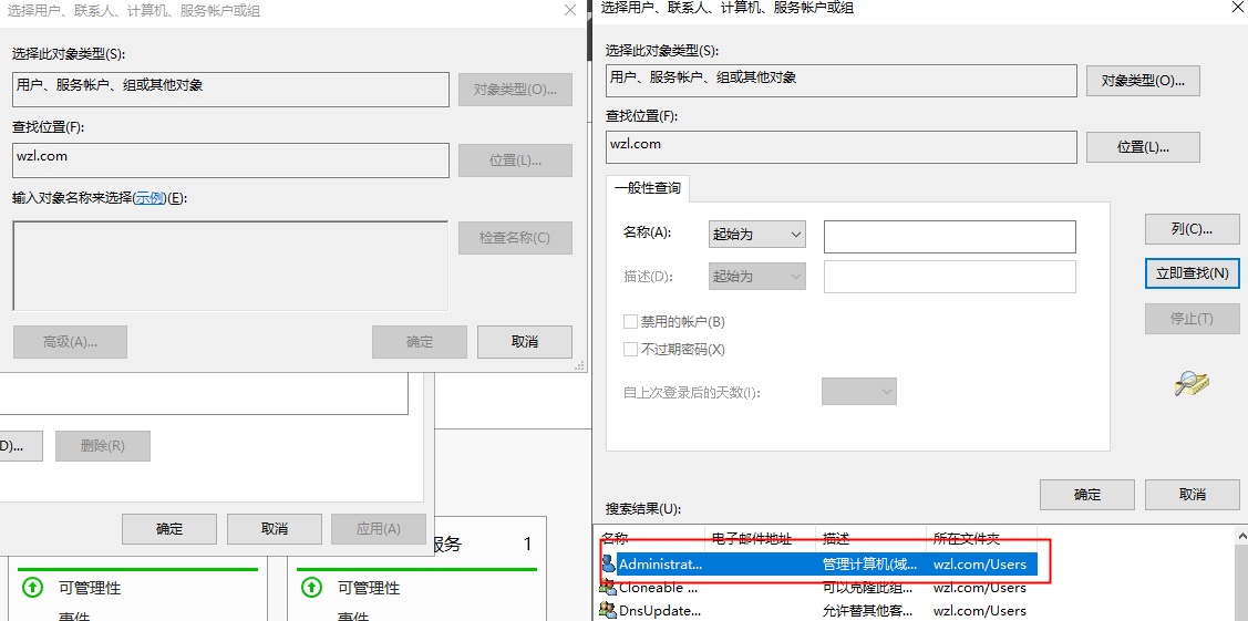 (8)在主机A(windows1)的AD用户和计算机中建委派wzldministrator拥有所有权限,重启windows7并用wzldministrator登录