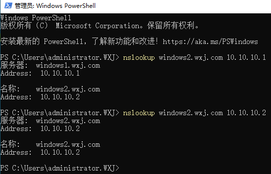 1)Windows Server A名为windows1:10.10.10.1/24,Windows Server B名为windows2:10.10.10.2/24;2)windows2为主域控,域名为wxj.com;3)windows1为辅DNS;4)准备工作:网络为关闭DHCP的NAT模式,网段10.10.10.0/24;5)涉及所有密码为qz123***