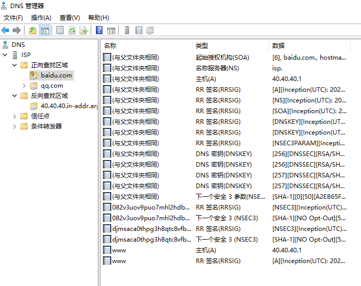 3.进行baidu.com区域签名后刷新查看新增与DNSSEC相关的记录