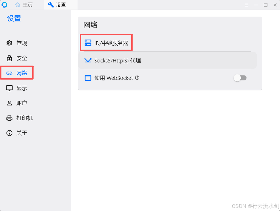 在“网络”选项卡中配置好“ID/中继服务器”