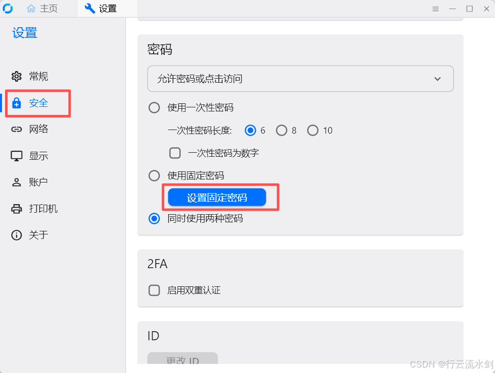 (1)设置固定密码(推荐)