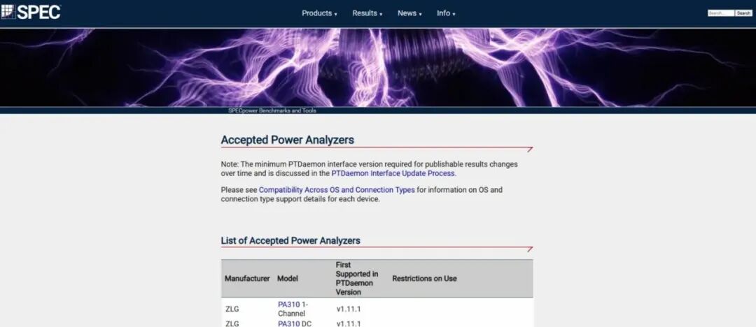 图 3 SPEC官网列出的受支持功率分析仪器