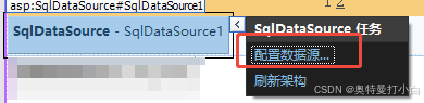 2. VS中,添加SqlDataSource控件,绑定数据源
