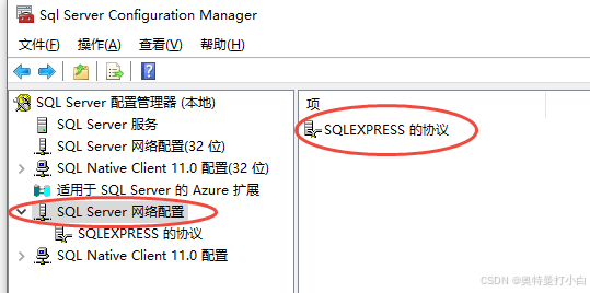 点击 “SQLEXPRESS 的协议”(右侧会显示该实例的网络协议列表);