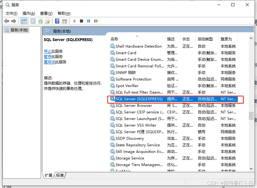 打开 “服务”(Win+R 输入services.msc),确认 “SQL Server (SQLEXPRESS)”服务处于 “正在运行” 状态;
