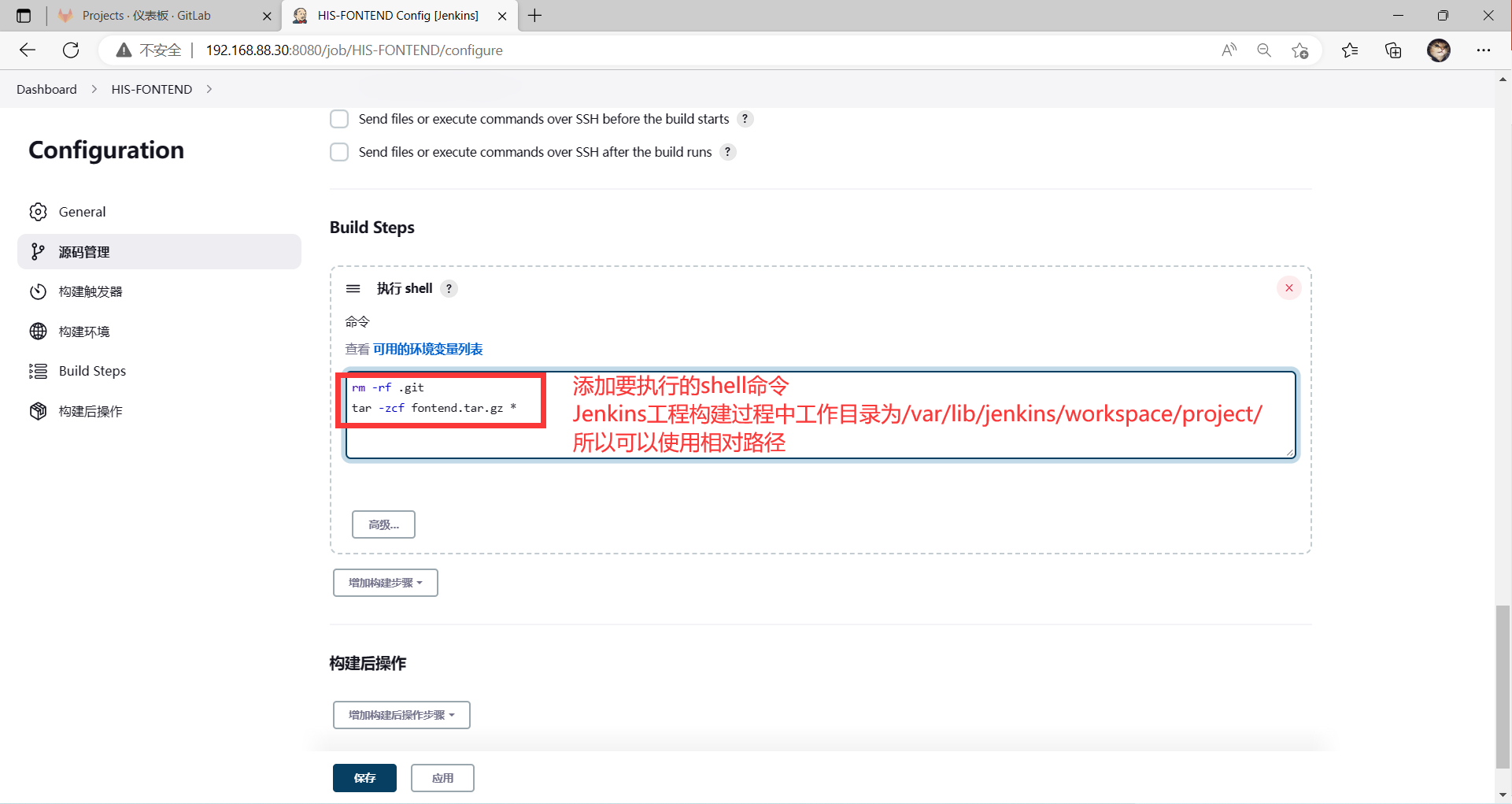 [root@Jenkins ~]# ls /var/lib/jenkins/workspace/HIS-FONTEND/ #目录下有代码tar包