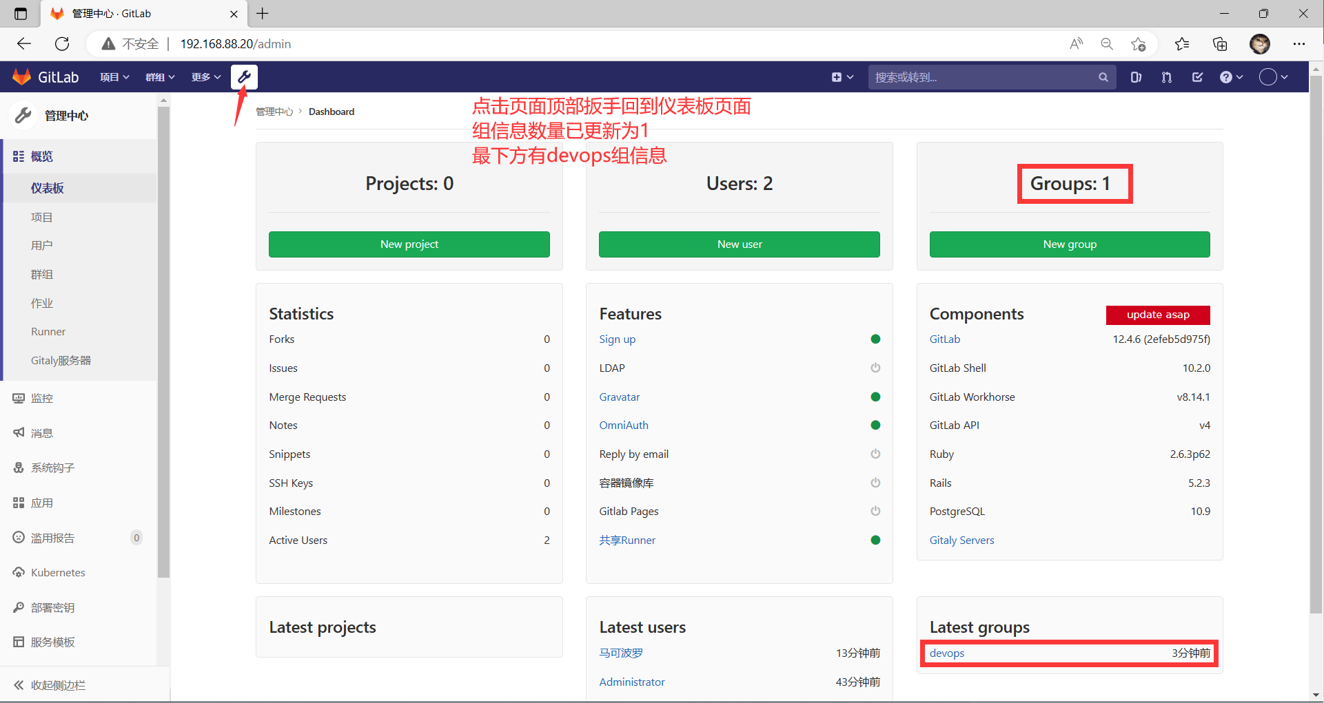 ok: run: gitlab-workhorse: (pid 2020) 1s //反向代理服务器