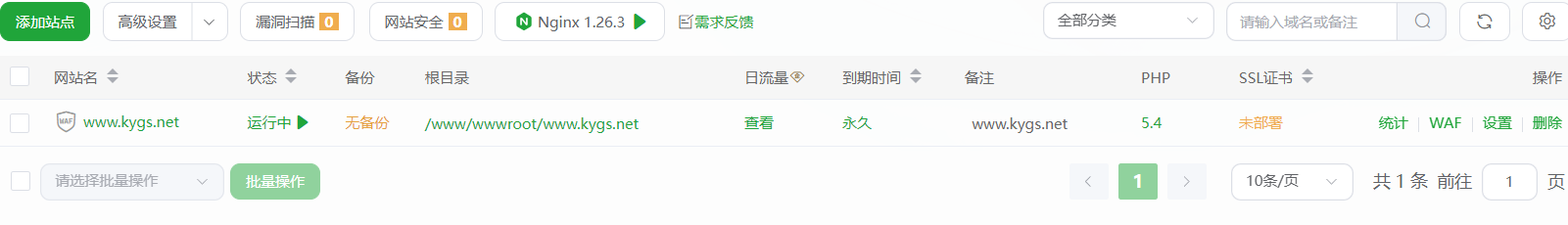 在软件商店安装php8(我这里安装的是php5.4),mysql7,nginx等软件后,进入网站菜单创建项目。