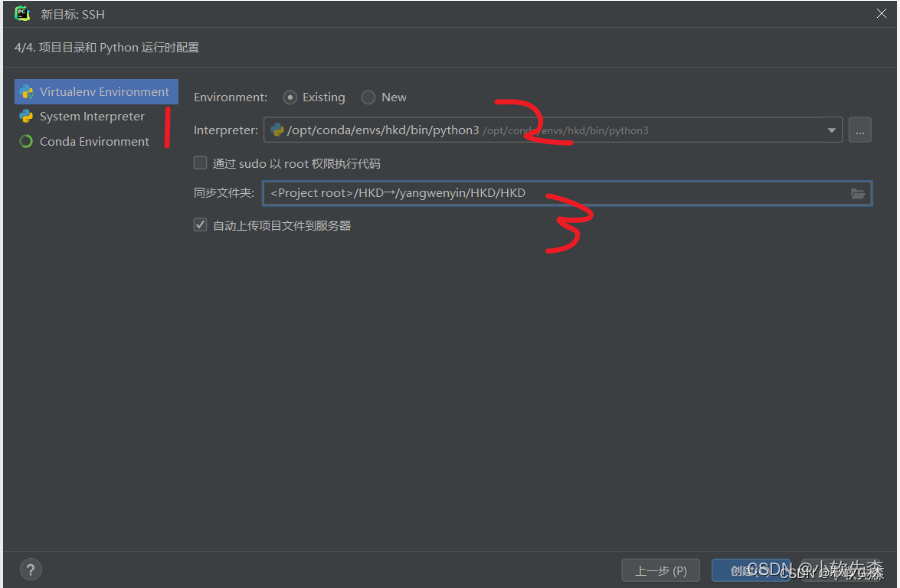 第二个是你服务器那边的conda环境路径(如果不知道自己使用的conda安装在哪个位置的可以使用命令where conda来查看conda的所在路径,但是我们配置的解析器是python解析器,所以要找到conda环境下的python解析器,先激活conda环境再用which python3查看即可)