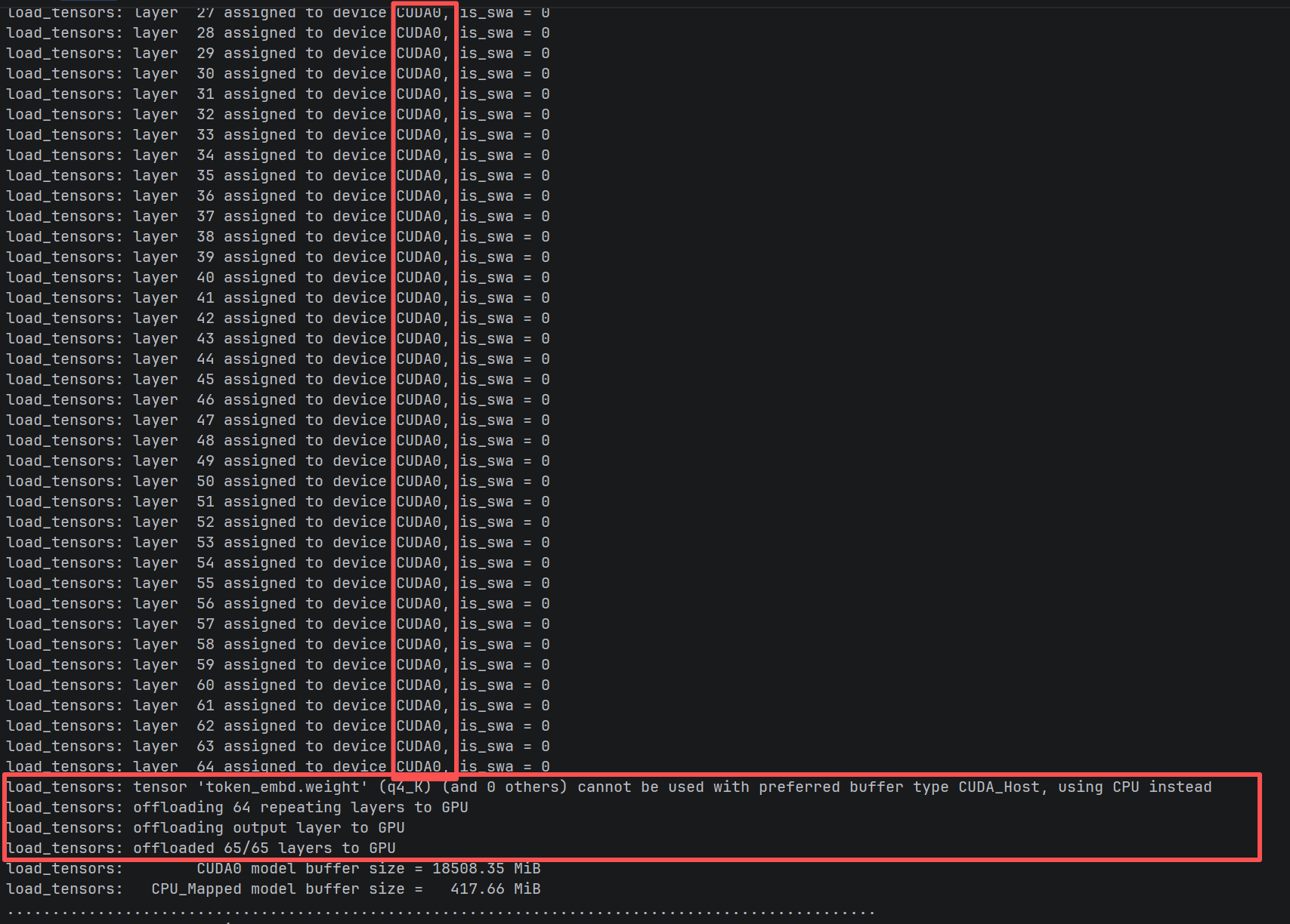 llm_load_tensors: offloaded 65/65 layers to GPU(层级完全卸载)