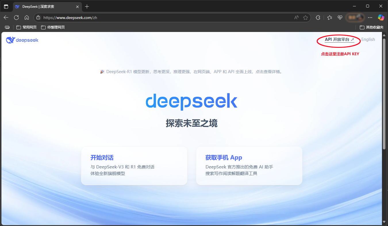6.deepseek api可以登录如下的deepseek主页(https://www.deepseek.com/),点击右上方的"API开放平台"