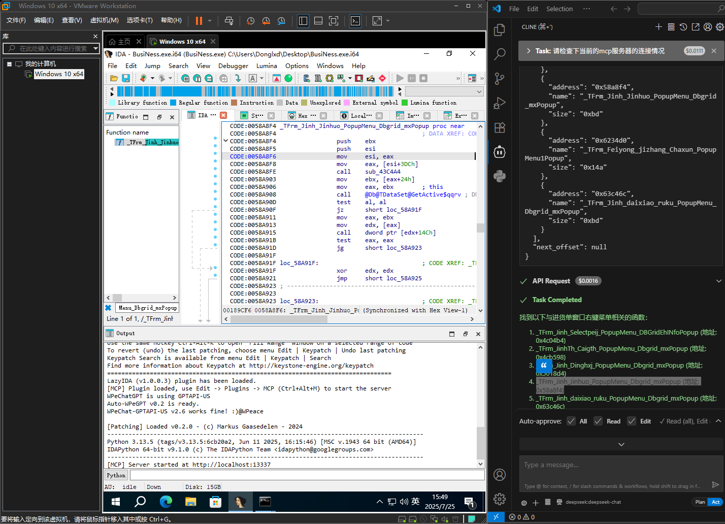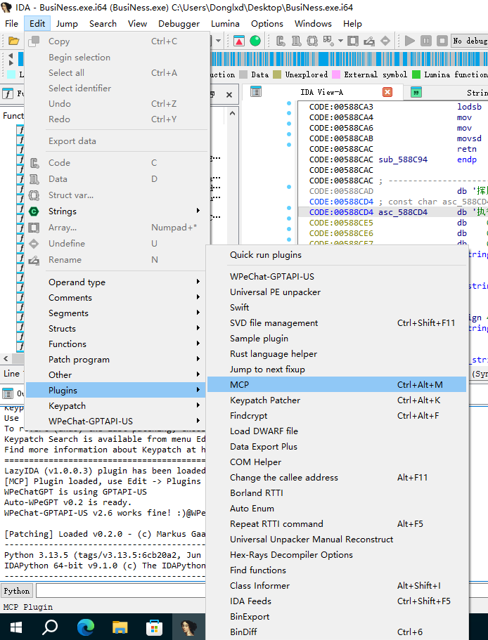 通过上面的步骤,MCP服务就算搭建起来了,接下来,我们来解决IDA其他插件和中文字符串显示的各种小问题,不想看的朋友可以跳过下一节。