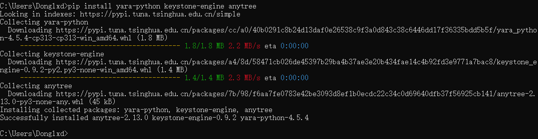 重新运行刚刚的"pip install yara keystone openai"命令,继续安装,报错如下: