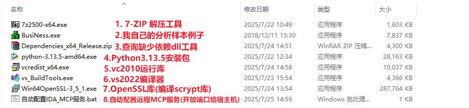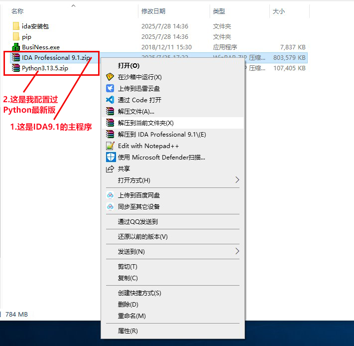 2. 我的安装包中"ida安装包"文件夹里有python3.13.5的官方安装包(第4项),大家可以直接安装,请大家注意,我这篇文章写了蛮久的,打包后的文件可能和截图有点不同,但是不影响大家使用,如有问题,请联系我更新。