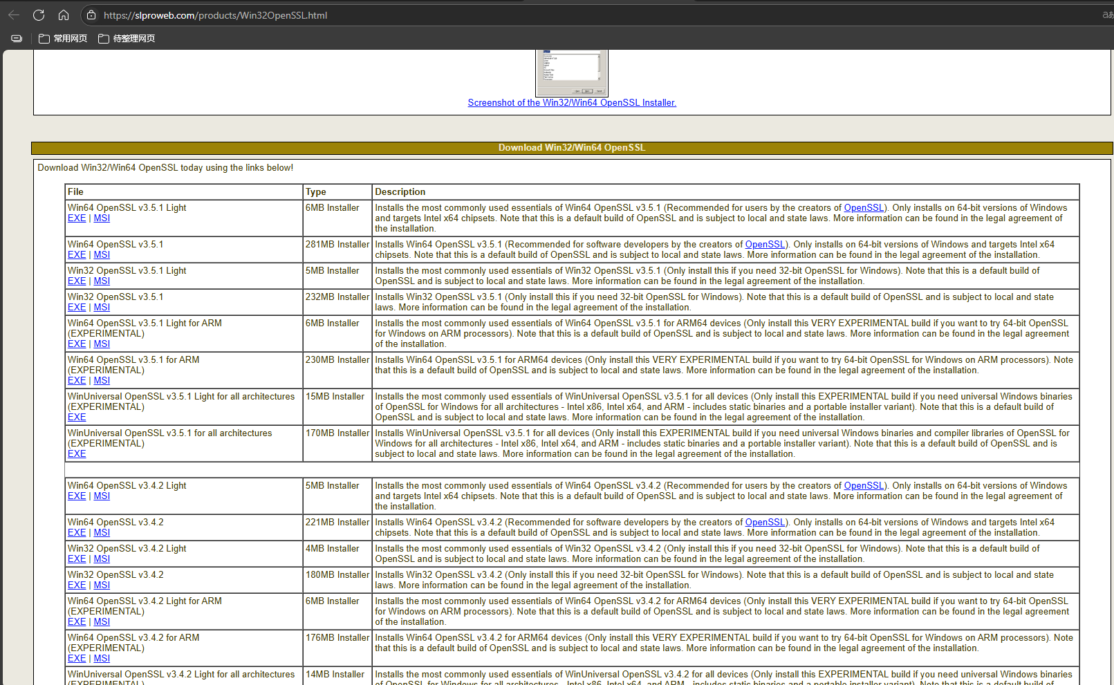 如上图的报错信息,提示scrypt-1.2.1/libcperciva/crypto/crypto_aes.c(6): fatal error C1083: 无法打开包括文件: "openssl/aes.h" : No such file or directory错误,显然缺少了openssl的链接库,到如下地址下载:https://slproweb.com/products/Win32OpenSSL.html