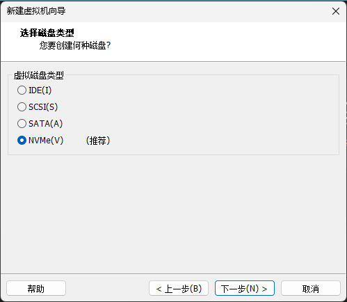 12.选择硬盘的类型,如果你是M.2固态可以选NVME,如果是SATA固态或机械盘,可以选SATA,点击下一步:
