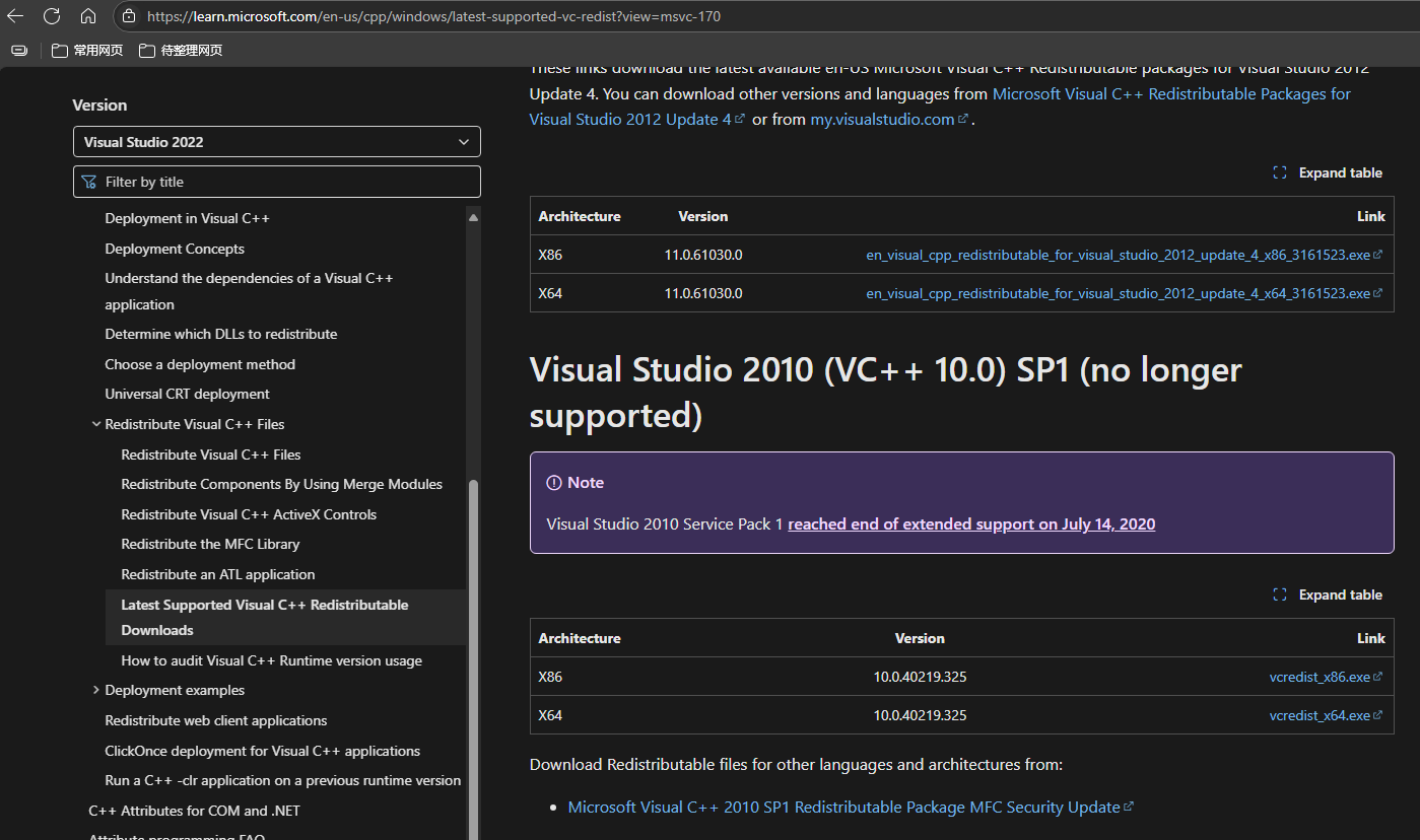 如上图所示,缺少MSVCR100.DLL,这是Visual Studio 2010的C++ 10.0运行库中的文件,因为我们是新装的虚拟机没有这些运行库很正常,到如下网址下载即可: