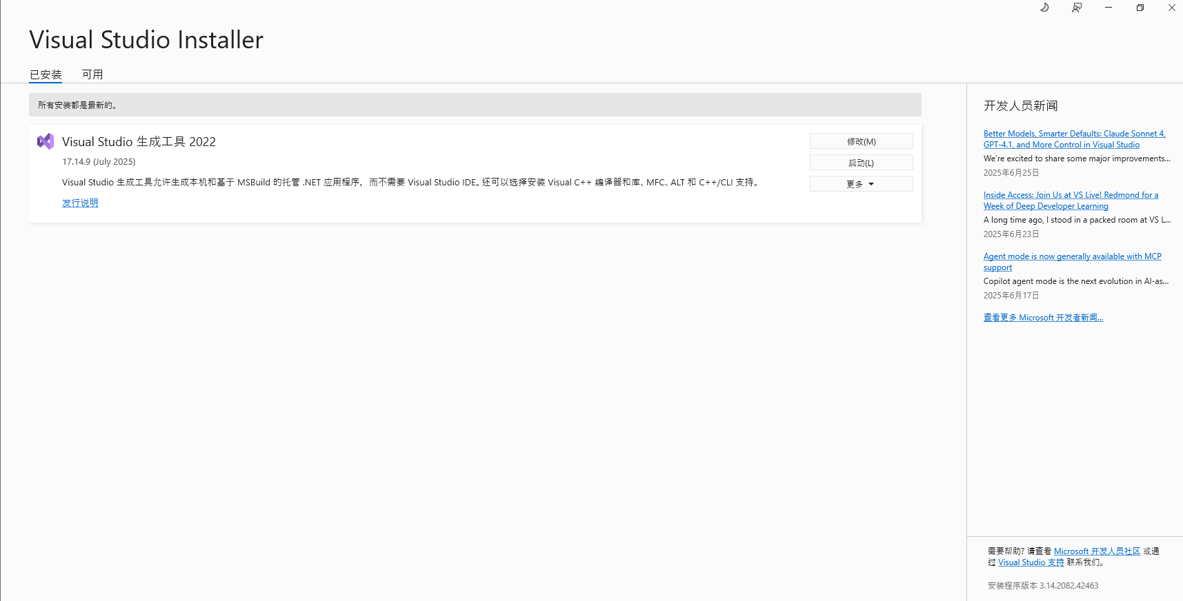 Error:Failed to build installable wheels for some pyproject.toml based projects(scrypt) 等多个错误,我们先到https://visualstudio.microsoft.com/visual-cpp-build-tools安装下C++编译工具,也就是VisualStudio,当前版本是VisualStudio2022,如下图页面: