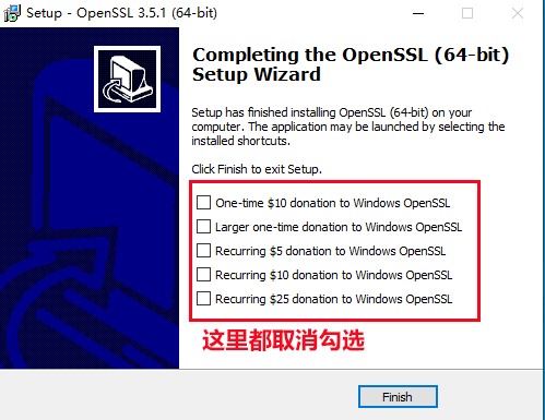 结束安装时,注意取消这里的勾(都是捐赠的选项)