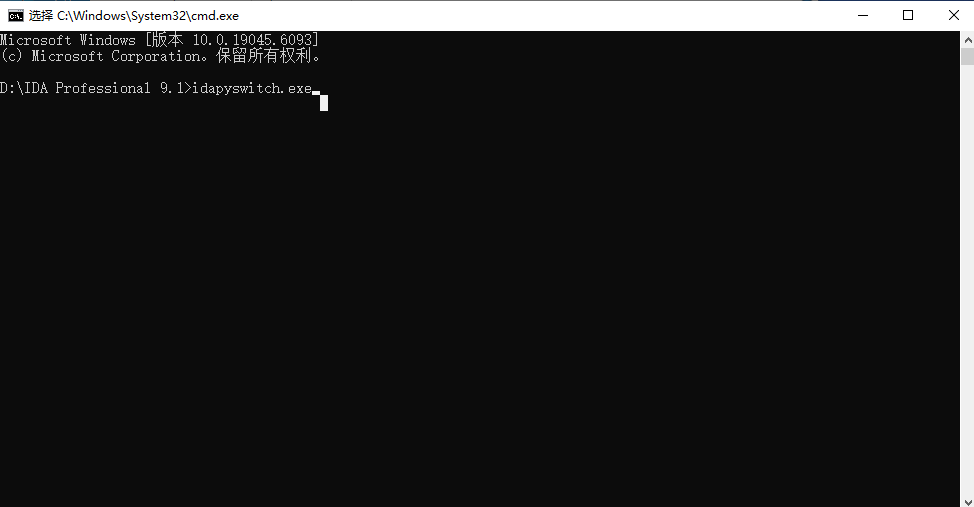 我们在上步打开的cmd命令提示符窗口中输入idapyswitch.exe,如下图:
