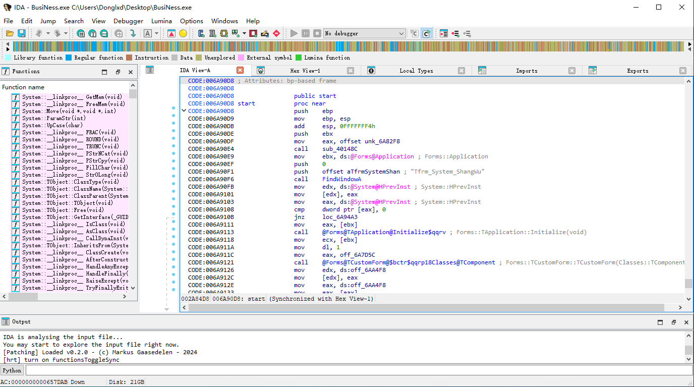 1.首先,我们加载下这个样本文件(BusiNess.exe),并等待IDA分析结束,如下图: