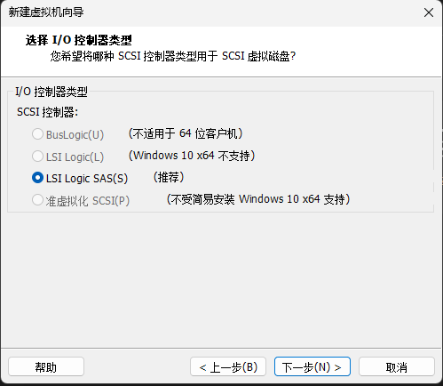 11.选择虚拟机的SCSI硬盘控制器类型,我这老电脑没有其他选择,只能选LSI SAS,如果对硬盘的相关知识感兴趣,可以看看刘伟写的《数据恢复技术深度揭秘》,里面有关于修复硬盘的所有知识,之后点击下一步: