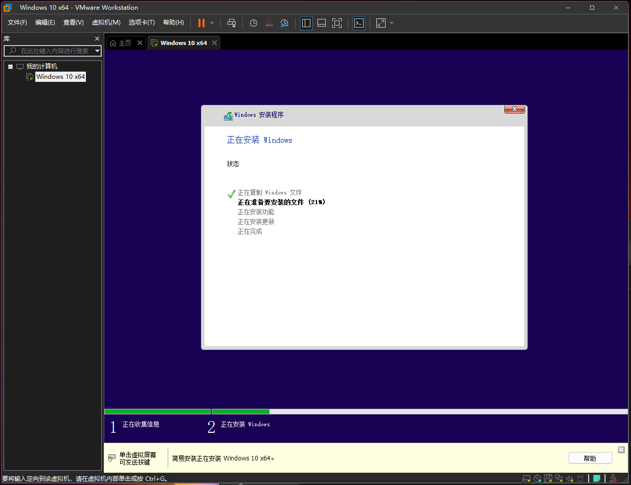 18.然后虚拟机会自动开始安装,如下面的图片: