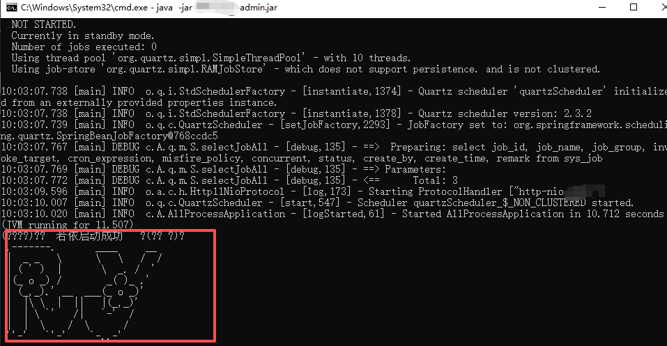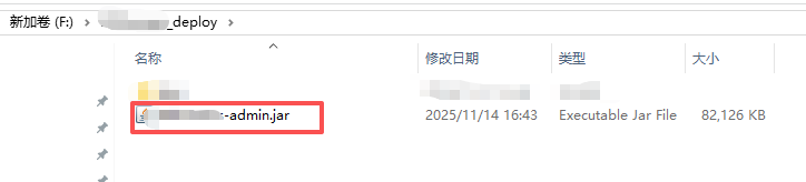 输入启动jar包的命令,将这里的xxx-admin.jar替换成你的jar包的完整名称。