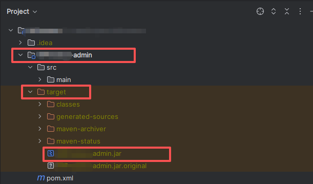 这时候在admin项目下的,target中会生成jar包。