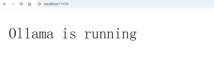 安装完成之后,在右下角会有一个羊驼的小图标,表示Ollama已经启动。然后我们打开一个浏览器,在地址栏输入localhost:11434之后回车,如果能够看到Ollama is running这样的字样,就表示Ollama已经成功安装,并且在本地运行起来了。