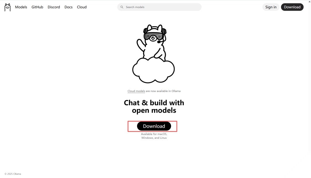 Ollama的安装非常简单,打开它的官方网站之后,点击下面的下载按钮,可以看到它同时支持mac、linux和windows三大主流操作系统,根据自己的系统选择对应的版本安装就可以了。