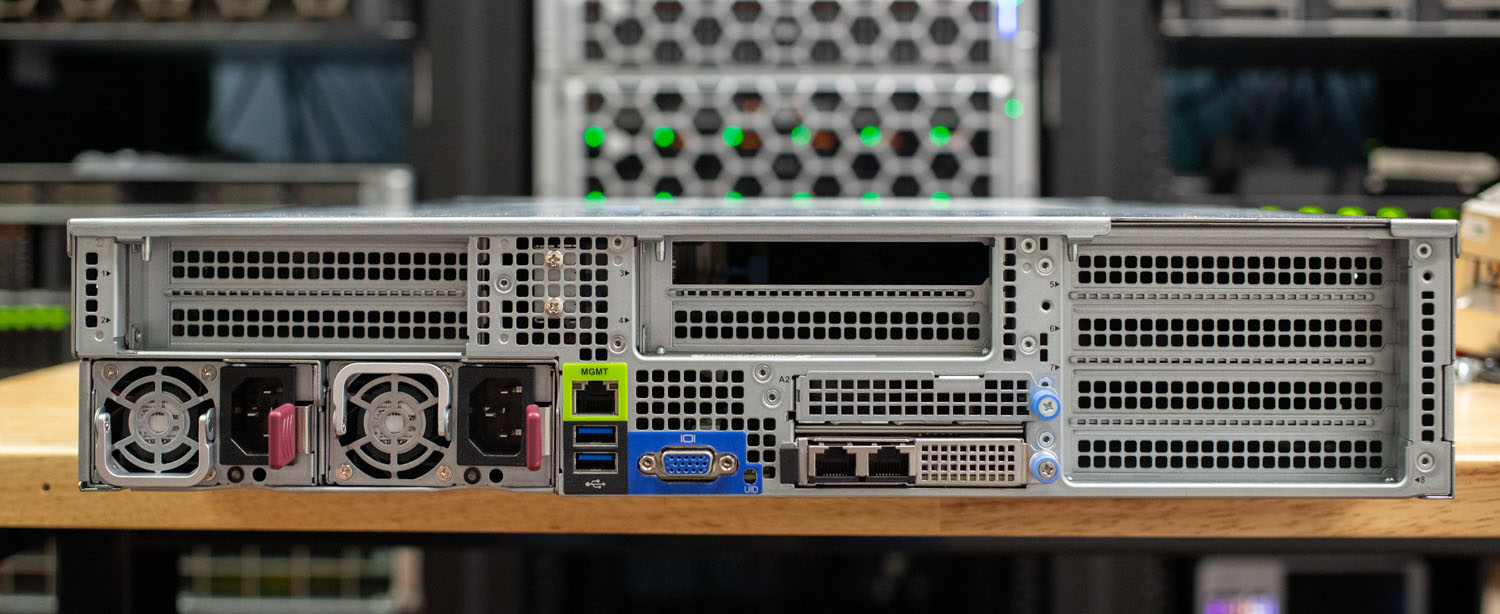 后端 I/O 面板精简实用:1 个 1GbE 管理网口、2 个 USB 3.0 接口 + 1 个 VGA 输出,覆盖本地调试、远程运维等企业日常硬件访问需求。