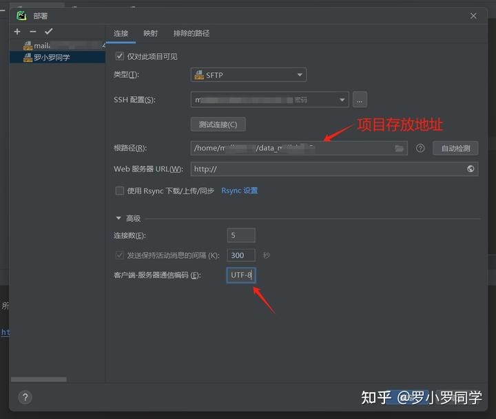 这里的本地文件路径和远程项目路径和第二步设置的一样