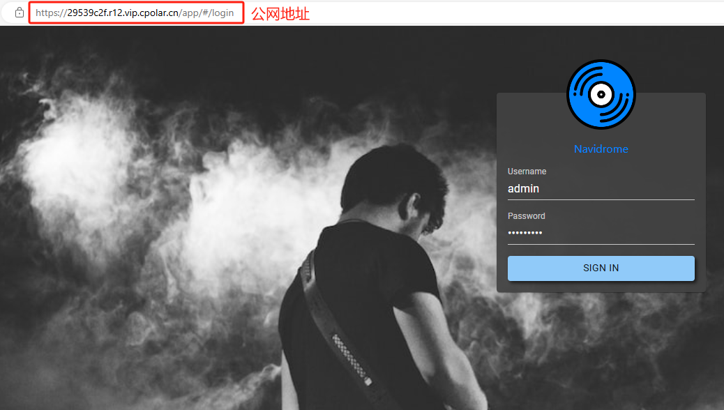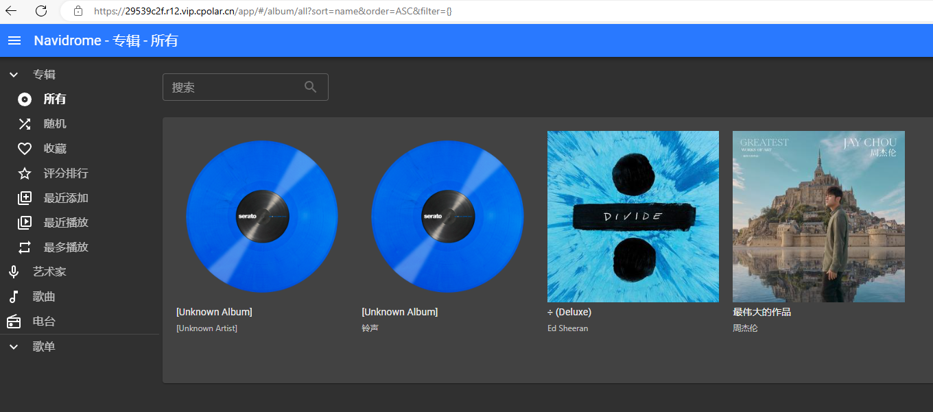 如下图所示,成功实现使用公网地址异地远程访问本地部署的 Navidrome 音乐服务器 !