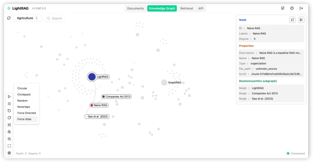 可以看到知识图谱和基于向量的RAG的一个显著区别是:数据库中不仅保存了文档的内容,还保存了对文档的分析和认知,
