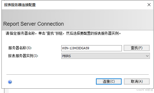 点击配置报表服务器,然后会弹出让你连接的界面,点击连接即可: