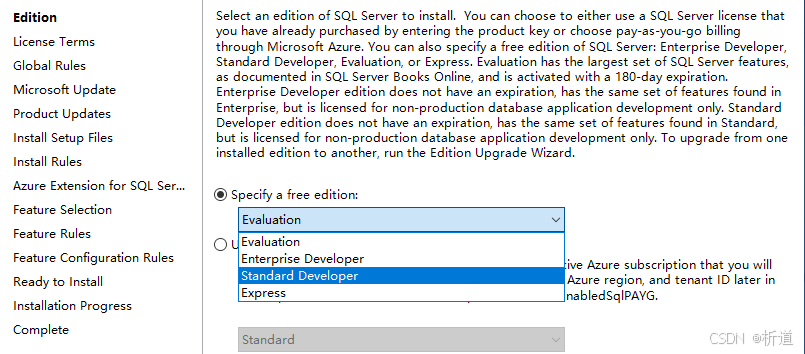 如果在前面提到的渠道中获得了产品密钥,可以在此时进行填入,如果没有,我们选择开发人员: