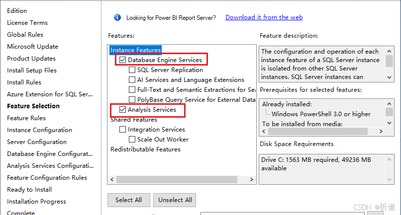 SQL Server需要选择企业版/标准版/开发版,Express版本不支持SQL Server Agent,而报表服务器的计划刷新又需要这个功能。