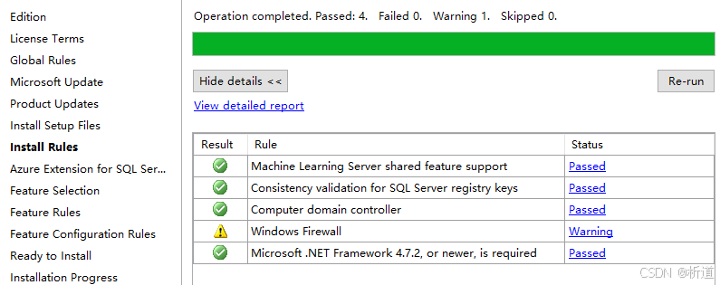 License Terms勾选就好,然后Global Rules这里status要没有fail