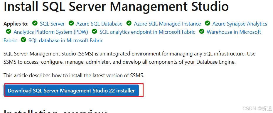 SSMS工具下载(这个是可选的,没有这个工具也不会影响部署流程):