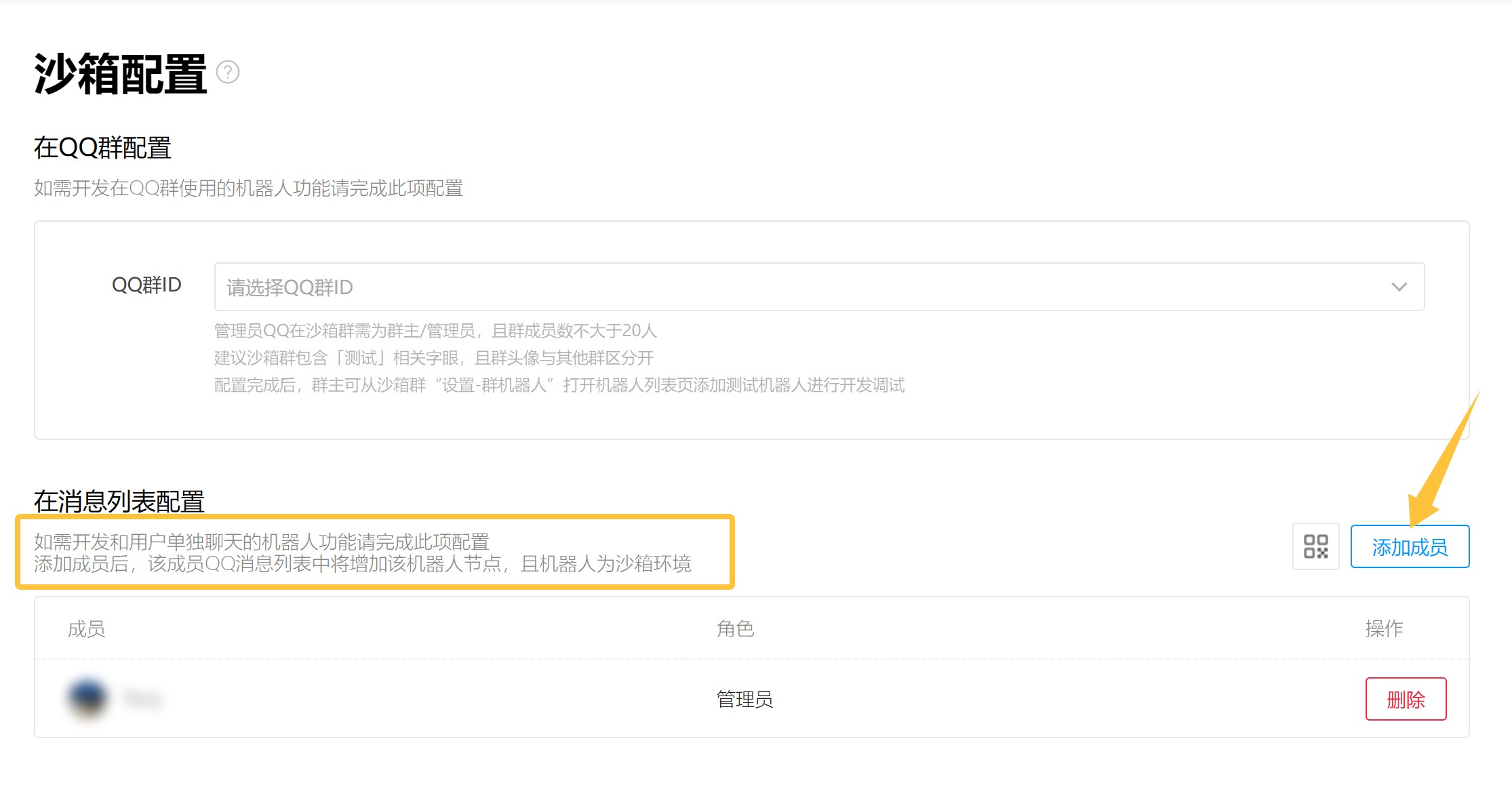 然后找到沙箱配置,添加一下自己的 QQ 号: