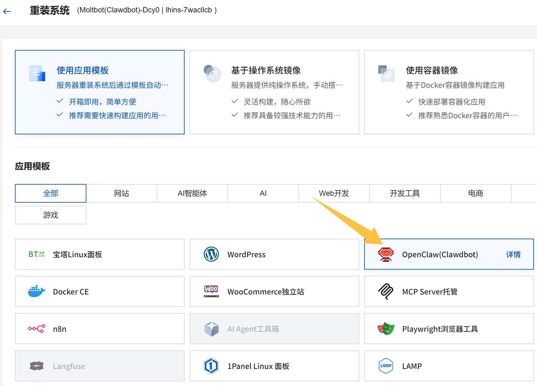 如果你本身有一个空闲的服务器,可以通过重装的方式,使用 ClawdBot 的镜像。